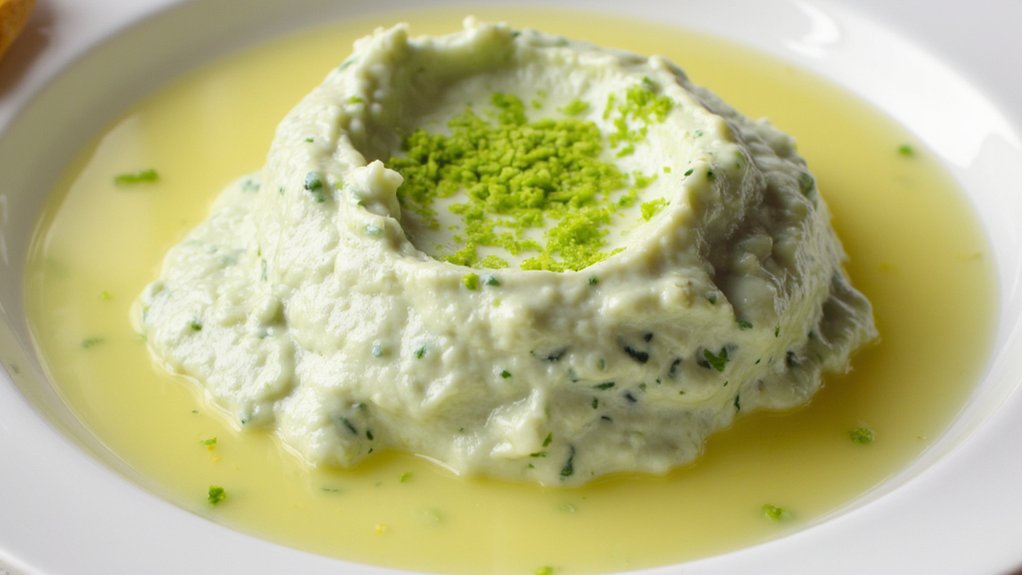 To create this delicious Herb and Parsley Alioli, you’ll need to blend fresh ingredients to achieve a smooth and creamy texture. The key to a successful alioli is patience and a steady hand when emulsifying the sauce. Using a food processor or an immersion blender makes this process easier, guaranteeing the oil and other ingredients blend perfectly without separating. Prepare this sauce ahead of time to allow the flavors to meld and intensify, making it a standout component of your meal.